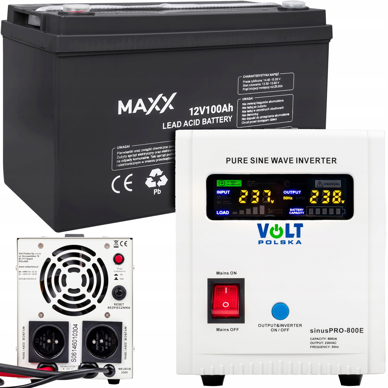 ДБЖ інвертор SINUSPRO 800E 12В чистий синус з акумулятором 100 А·год VOLT POLSKA